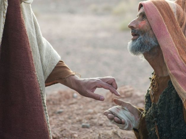 mengulurkan tangan-Nya, menjamah orang itu dan berkata kepada: “Aku mau,