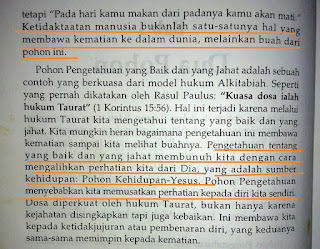 Dalam kondisi berdosa, orang tidak boleh merasa dirinya akan hidup kekal dan bahagia yang mana ilusi itu akan diperoleh saat mereka makan pohon kehidupan. Manusia berdosa harus disadarkan dari kondisinya yang berdosa sehingga ia akhirnya mau melepaskan racun buah pohon pengetahuan baik dan jahat itu untuk berpaling sepenuhnya pada Yesus yang adalah pohon kehidupan. Dalam Yesuslah, kita beroleh kehidupan kekal itu kembali selagi dipulihkan makin segambar dan serupa dengan gambaran Anak Bapa yaitu dengan Yesus sendiri.