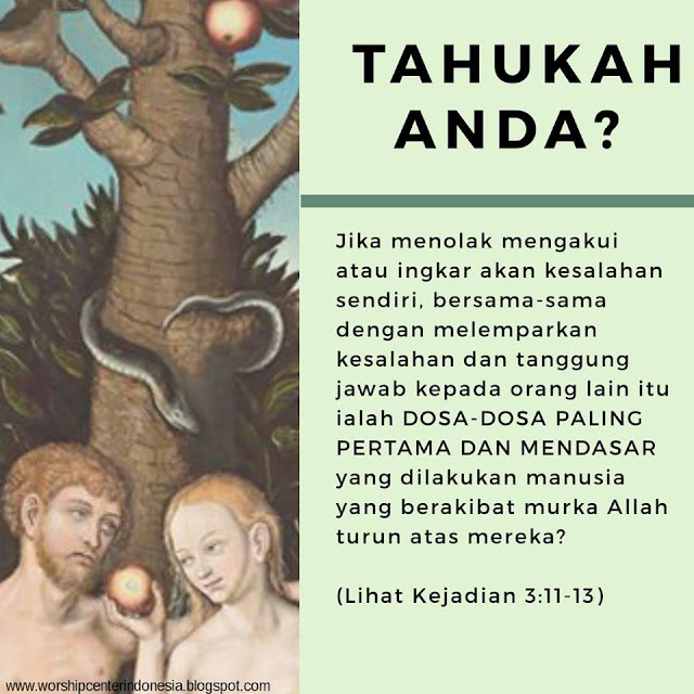 Atau jika kita tahu kita telah melakukan sesuatu yang telah melawan Dia dan bertentangan dengan kehendak-Nya, lalu kita menyalahkan orang lain sebagai yang harus bertanggung jawab atas kesalahan kita itu, MAKA KITA TELAH MENGHILANGKAN KESEMPATAN TUHAN UNTUK MENGAMPUNI KITA….