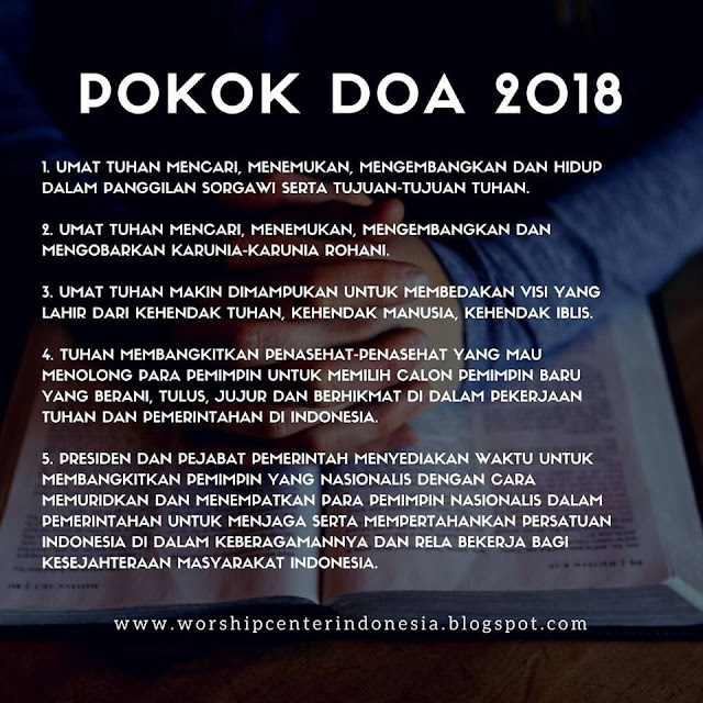membagikan beberapa pokok doa dan strategi profetik tahun 2018. Pesan