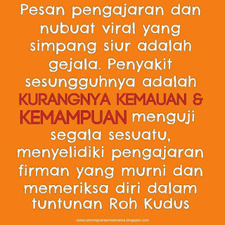 Kegagalan menguji dan membedakan mana yang dari Tuhan, mana yang suara batin dan pikiran sendiri, mana yang suara iblis yang menyamar sebagai malaikat terang dan mana yang bisikan si jahat telah membuat kesimpangsiuran yang luar biasa sehingga terjadi kebingungan, kekacauan, kesalahpahaman, perpecahan bahkan kesesatan yang besar di gereja dan gerakan rohani di seluruh dunia. Dan semakin kita gagal menguji segala sesuatu dan semakin dalam berkutat dalam kebodohan maka semakin sesat dan palsu pula apa yang kita sampaikan dan yang kita terima sebagai kebenaran.