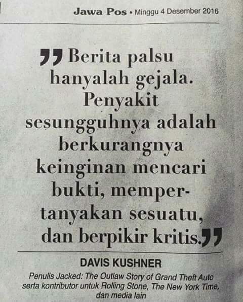 Era informasi telah menjadi era yang disebut Alkitab sebagai era “menyesatkan dan disesatkan” (2 Timotius 3:1-11,13). Apa yang terjadi di alam jasmani hanyalah cerminan dari apa yang sudah berlaku di alam roh. Kesesatan rohani pada gilirannya akan membuahkan kesesatan-kesesatan di kehidupan lahiriah sehari-hari. Berita hoax yang begitu marak melanda seluruh dunia merupakan dampak lanjutan dari kebohongan, penyesatan dan pemalsuan pesan-pesan rohani dari firman Tuhan yang murni dan sejati.